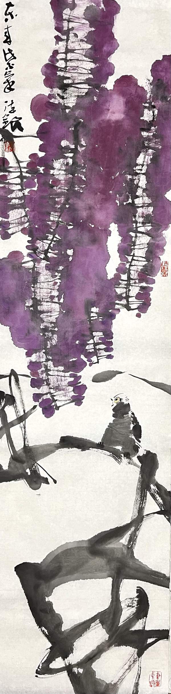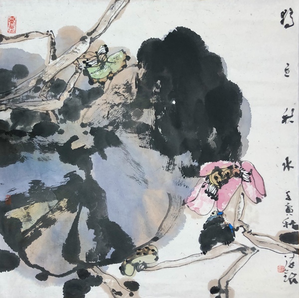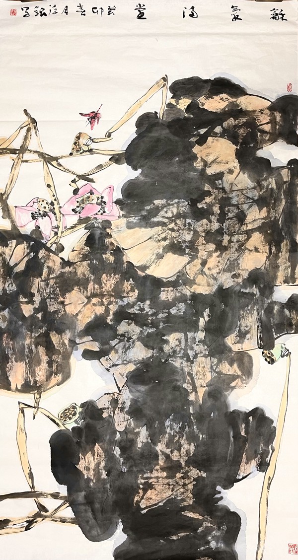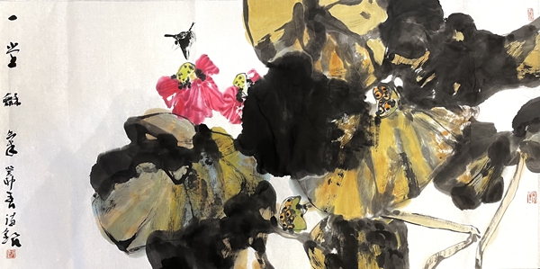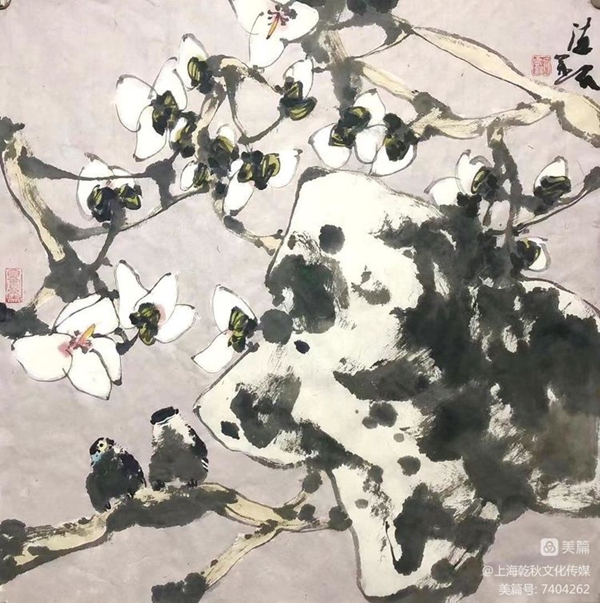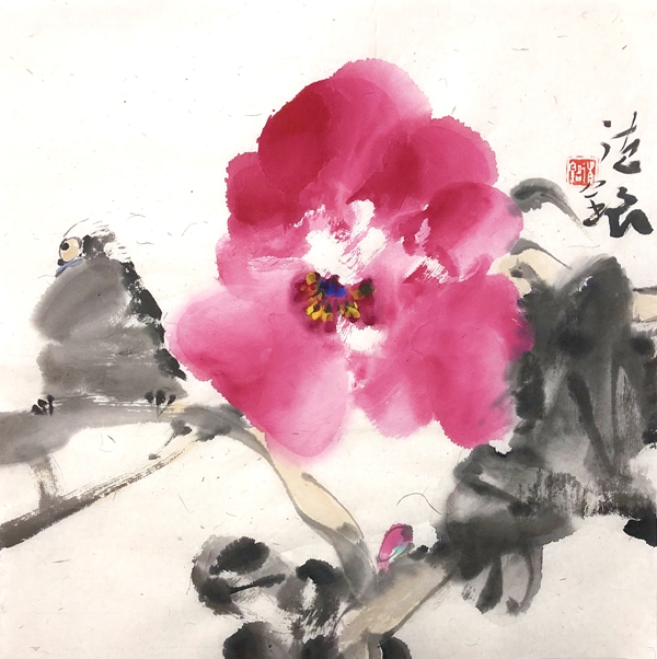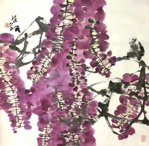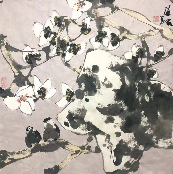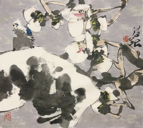 何德明先生的花鸟画,文化意蕴厚重而表象轻灵,且富于神韵,笔与墨、墨与色、水与墨之间,法度与自由之间,理性与直觉之间,被流动的生命气息所贯通,意象因而生机勃勃,即灵动含蓄、苍润浑厚、气象郁勃,充溢着乾坤清气。