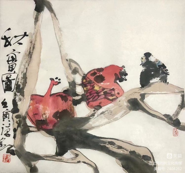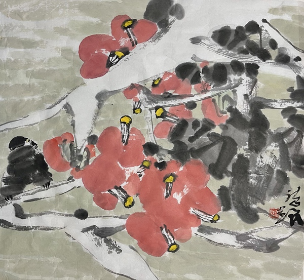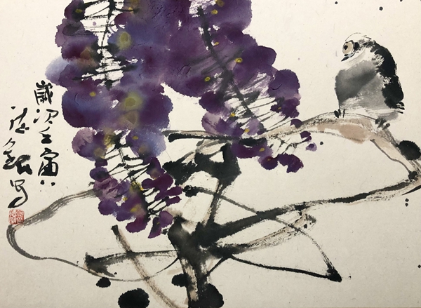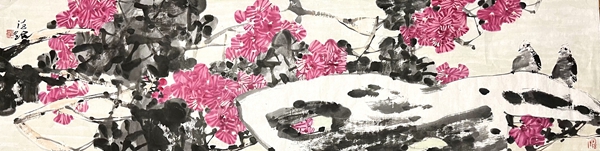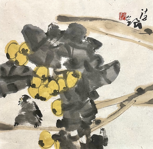 何德明先生花鸟画形成以写生为基础,以寓兴、写意为皈依的传统。他这种传统的形成恰恰是适应了社会的审美情趣。写生不仅是为了捕捉花鸟外在的形,也是为了领会花鸟之意态;而寓兴则是借物言志或是寄情花鸟,这种寄托与国人的含蓄审美观有着内在的联系。何德明先生就是强调以书入画,强调写出他的心意;意者重在强调观察花鸟之后所产生的情趣。这种内在情趣需要借笔毫抒发而出,淋漓尽致地表达他的才情和意趣。