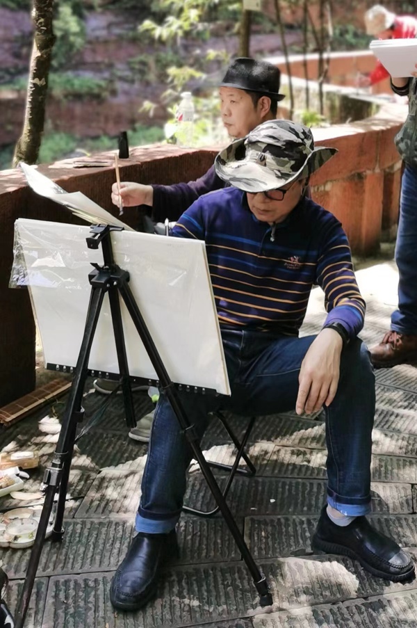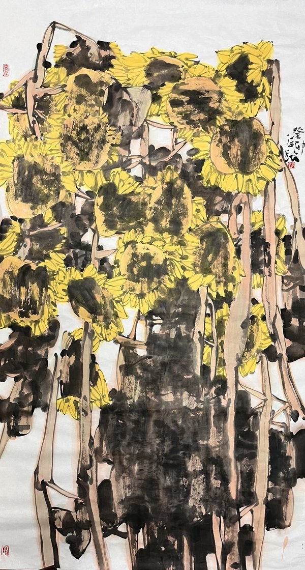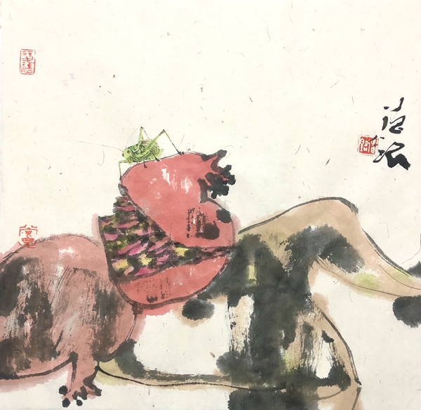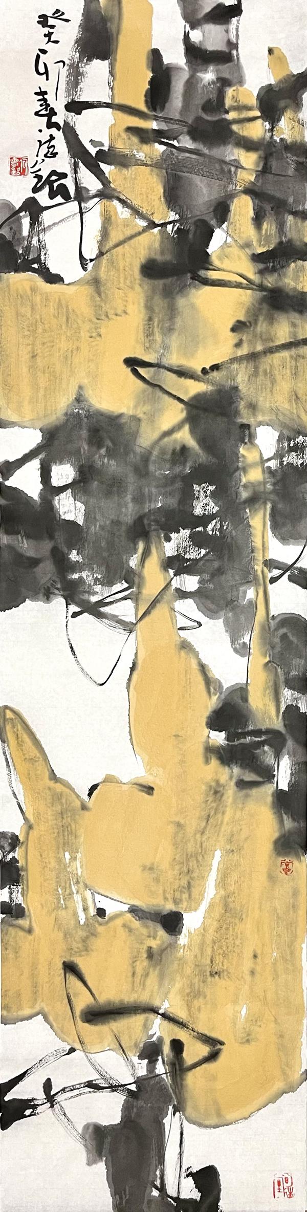 何德明先生非常重视技巧、技法,技艺的完善。艺术家不是一般的艺人,他必须用头脑和心灵创作,但仅有思想而无技巧、技艺决不能做好艺术。中国画是既重视创作理念又十分重视手上功夫的艺术。看的出何德明先生很大的精力锤炼自己的笔墨技巧。大胆用色、精心用色。