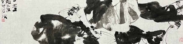 其作品在墨迹之外留出广阔的虚拟空间,将境界、意象容括其中,注入了生命的感悟、精神的逍遥和艺术的沉思,读者的兴趣自然也被生生不息地引发出来。因此,他的作品隐含着难得的灵性光芒和精雅气质。读其大画及小品,均寄诗性于简净中,发现浓意在淡宕间。这显然超脱了单纯的浓或淡的层面,唯以神致、诗性与趣味驭笔。