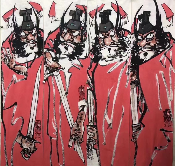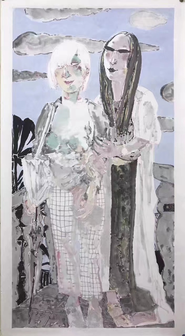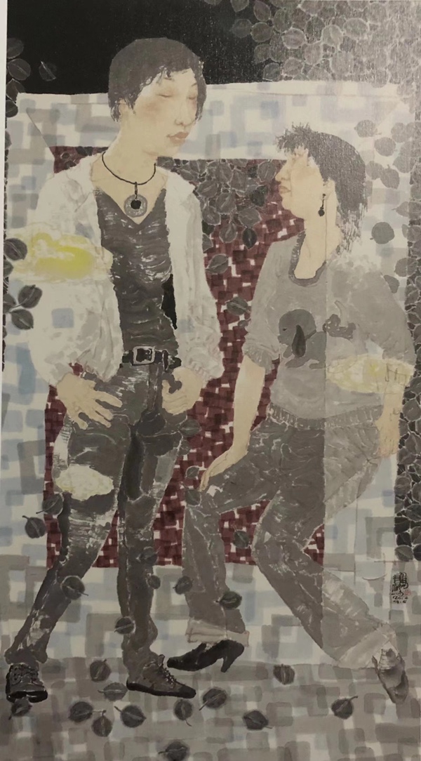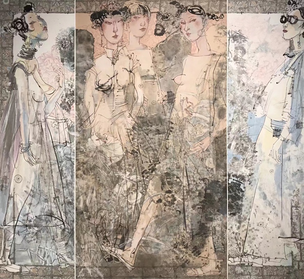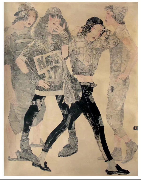 幸福的作品以人物画为主体,表现手法多变,既有传统意义上的笔墨传承,也有时代新观念的综合体现,作为一个生活在当今社会的绘画艺术家,表现手段的兼具性是对画家的基本要求,一昧的传承或一昧的创新都是走不通的,唯有兼融才是出路。