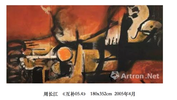 周长江如是说:“‘互补’喻示着对立与统一,展现无所不在的两极关系:大与小、强与弱、简单与复杂、理性与感性、传统和现代、东方和西方…”。对艺术家而言,“互补”并不是一个虚无缥缈的概念,而是周长江在中国当代艺术转型时期所提出的新的探索方向,这是“求变”亦是“求真”,正如周长江在自述中所说的那样,“互补”是他在研究了西方现代绘画后所进行的反思,是基于中国传统审美理念而提出的艺术理想,这一概念的提出是为了在世界文化艺术的进程中找到东方现代艺术的位置,找到中国现代艺术的位置。