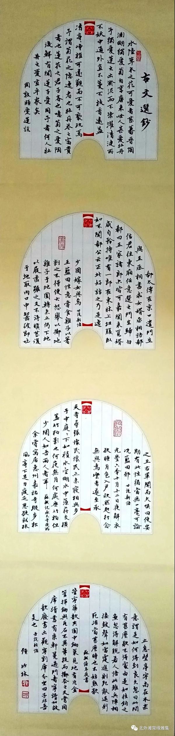 在诸体书法中,顾妙林写的比较多的是行草和小楷。近年来,她特别喜欢写小楷、抄经文。《金刚经》是他抄写最多的一部经书。每每凌晨四点毫无睡意的他,便早早起床,焚上一支沉香,泡上一壶香茗,便聚精会神抄写经文。至今已经完成小楷《金刚金》近50篇,累计花时一千多个小时,25万多字。他认为,抄写经文既可弘法积德,又可练字,也培养了自己耐得住寂寞的意志与定力。