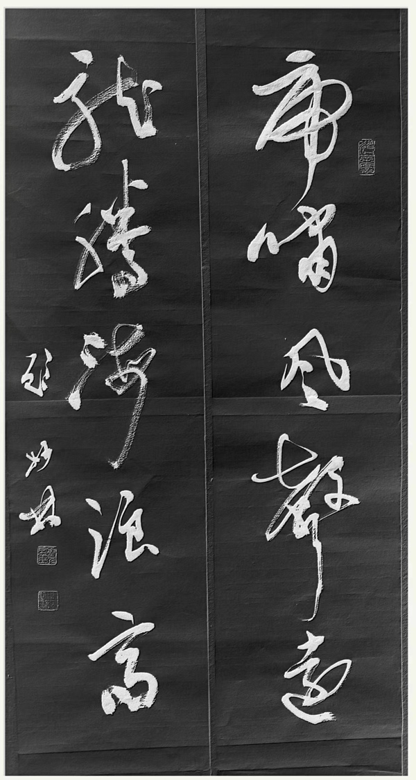 观顾妙林创作,如同赏一场大自然的神工妙笔。其字势如行云流水,欹侧变化,姿态翩翩,佳境环生,时有奇趣,耐人寻味。顾妙林的作品无不显示功力深厚,避俗超凡,但他并不因此恃才睥睨,反而更加扎实专精,追求更高的审美立意和美学思想。