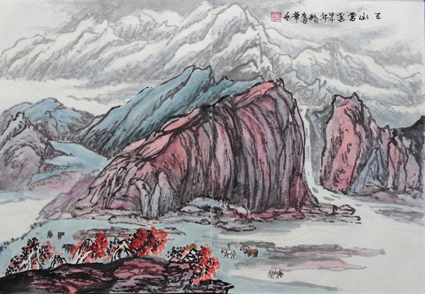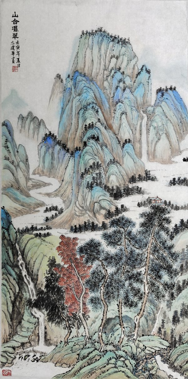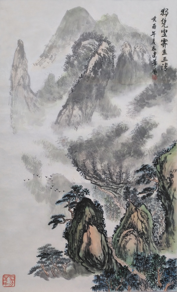油画师承颜文樑,国画师承陆一飞。从研究明代画家唐寅入手,遍临唐、五代、宋、元、明、清等历代书画名家作品,植下了坚实的传统根基;并以大自然为师,他还应邀前往全国讲学、写生,走遍祖国大江南北,探寻造化的奥秘,写生稿盈夹,艺技日进,终有所成。艺术风格入传统而不泥古,心师造化,独辟蹊径。其作品水墨淋漓,雍容大器,古朴隽永,气势磅礴,意蕴悠长,用笔苍劲有力,色彩淡雅明丽,雅俗共赏。