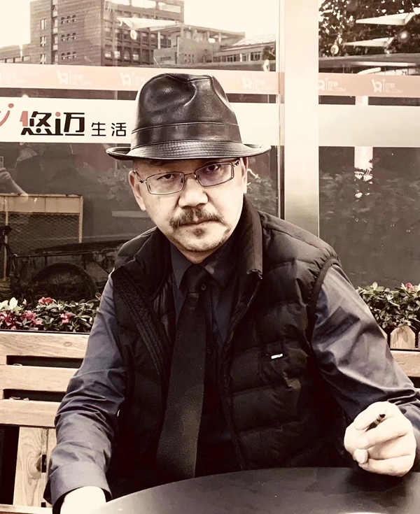 肖凡的作品以前见过,也颇有印象。印象中他的风格及笔墨很灵气,有种江南才子的风采,一直以为他是江南一带的画家。去年我重返云南曲靖沾益马雄山北麓珠江源头看看,并想做新的创作。老友“滇王”李建东兄唤肖凡等老学生带我过去珠江源头,这才认识了肖凡的“真身”。没想到,他不是江南人,老家就是曲靖沾益,就是珠江源的人。观长相,灵秀中有几分蛮气,大光头与小胡子一配,还真有点幽默感。他平时说话不多,偶尔几句,幽默感恰到深处;喜喝酒,喝起酒来更是蛮气豪横;而豪横一过,如醉如泥,憨厚可爱。