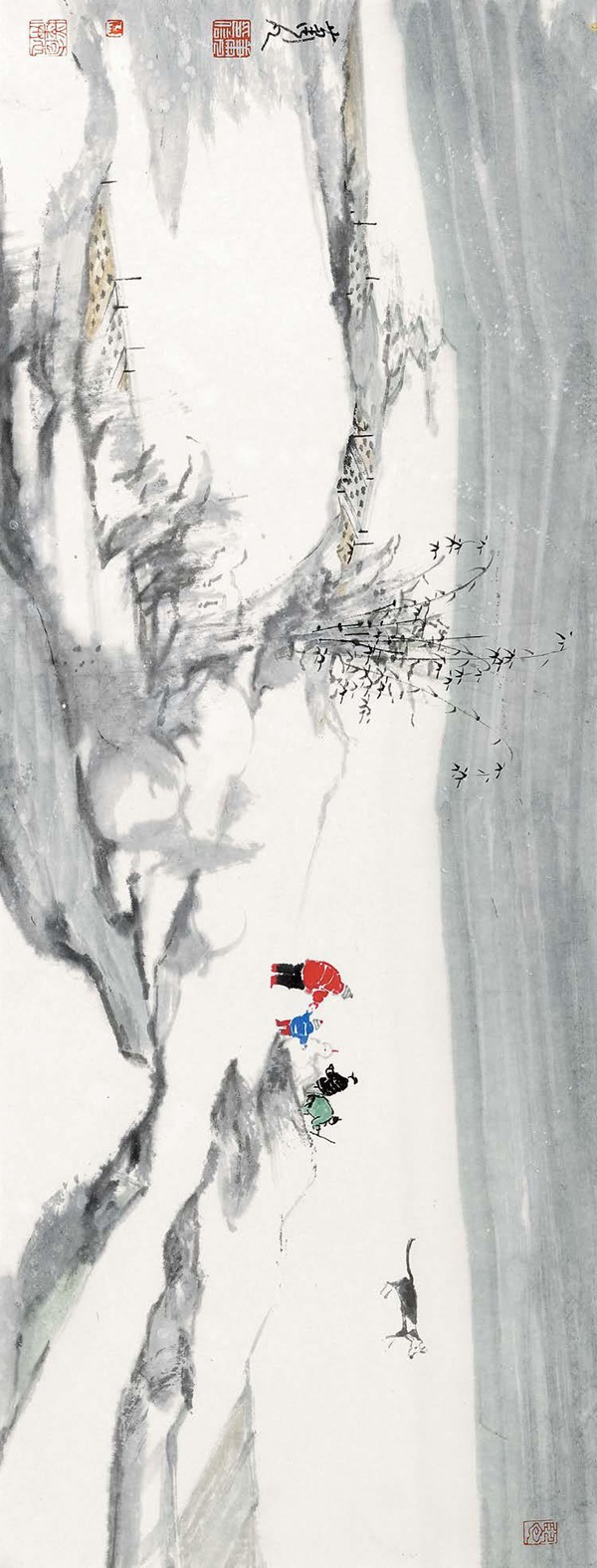 肖凡/作品 玩雪图 68cm×23cm 2021年 纸本水墨