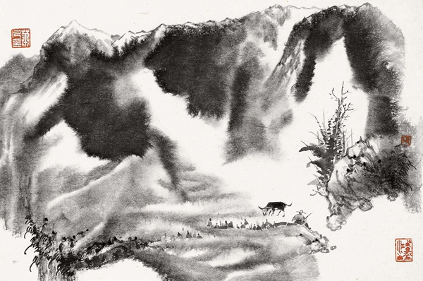 肖凡/作品 高原牧歌 23cm×34cm 2017年 纸本水墨