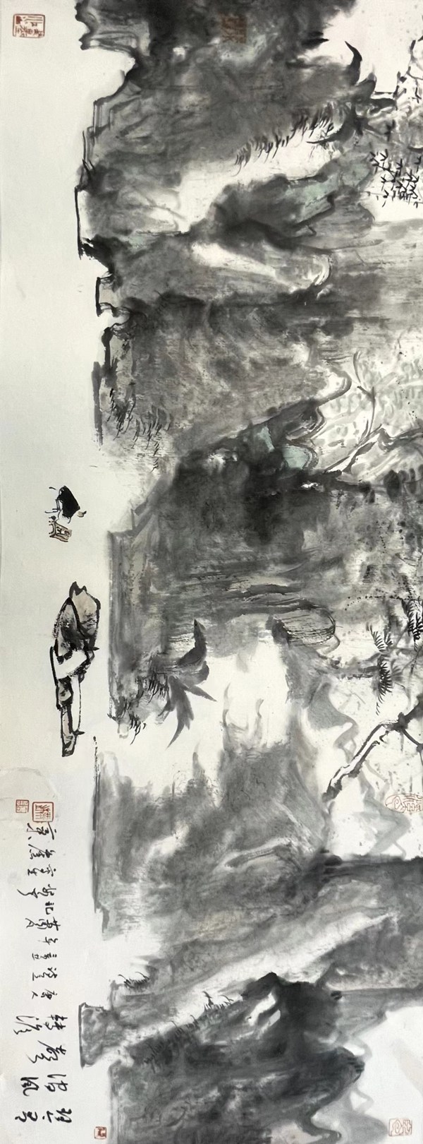 ️画题:唐人诗意图/尺寸:69 X26cm/材质:宣纸·水墨/年代:2021年
