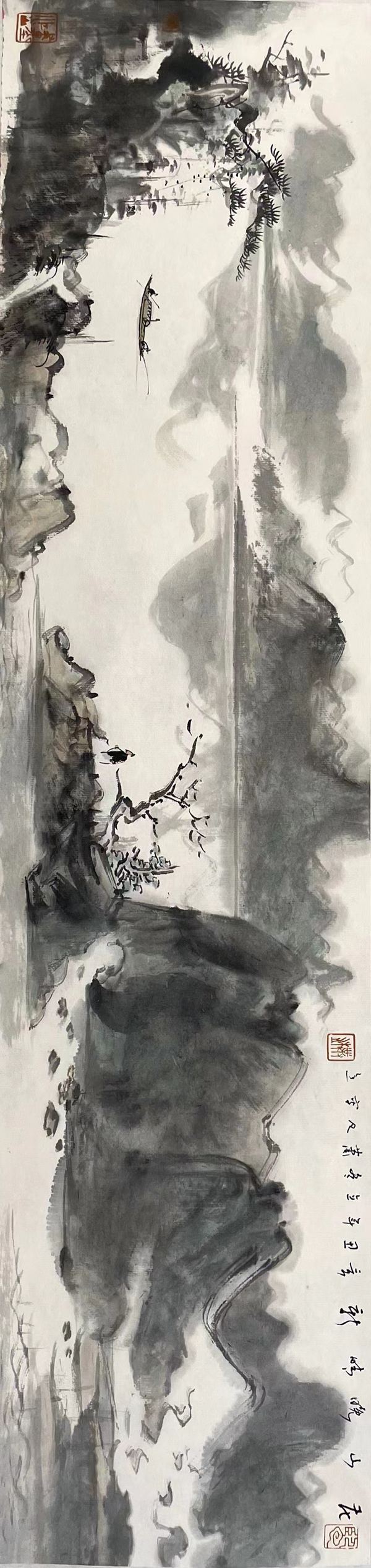 画题:画山晚晴新/尺寸:69 X17cm/材质:宣纸·水墨/年代:2020年