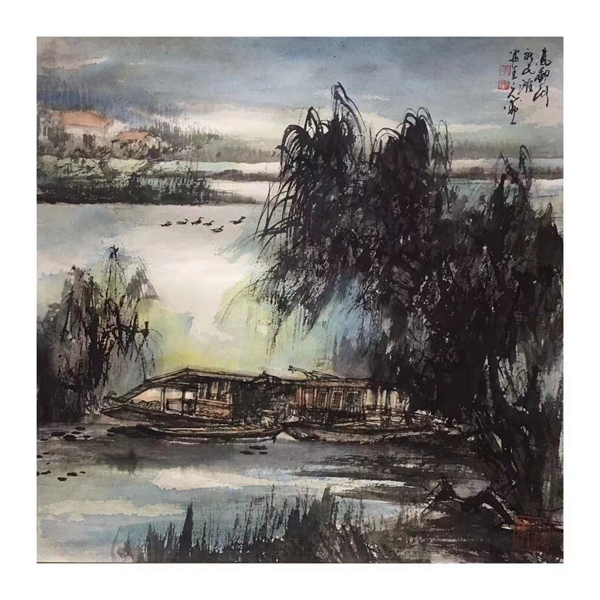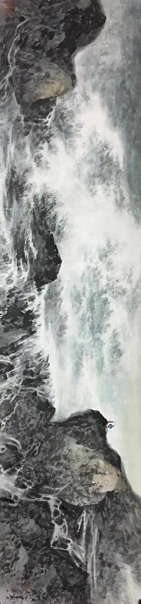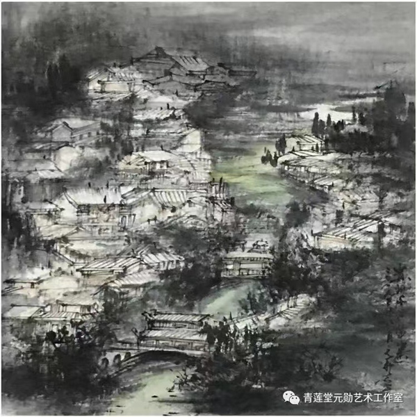 李元勋的画我大多数都很欣赏。我感到他画得很纵恣,笔墨上放得很开,无论是山水系列,还是屋语系列,画面上水和墨的洇渗效果,非常自然,给人感觉是天然的一样,你可想到他作画时候,毛笔散锋都已经散到那种程度了,他也不可以去调整,可以说已达到了中国画中用笔自如的境界了。