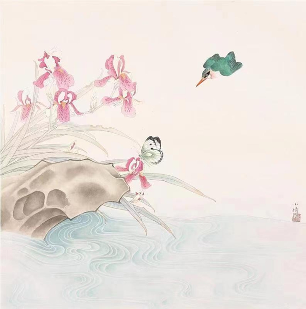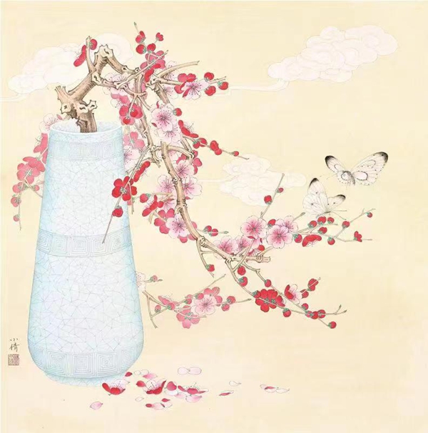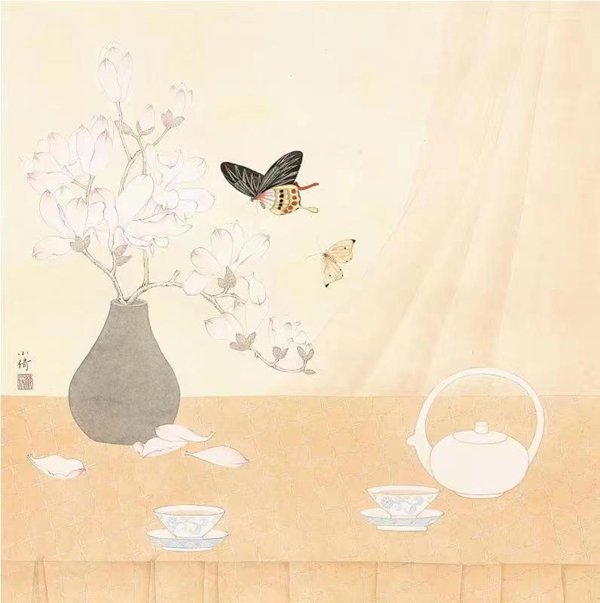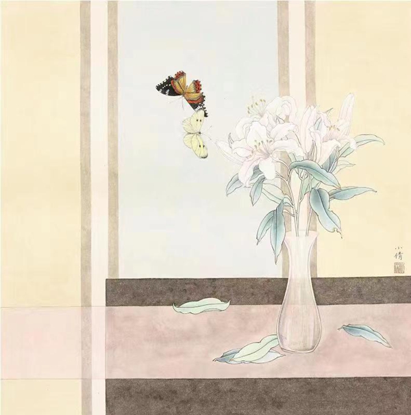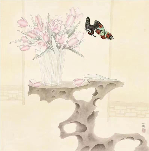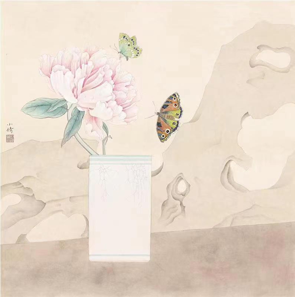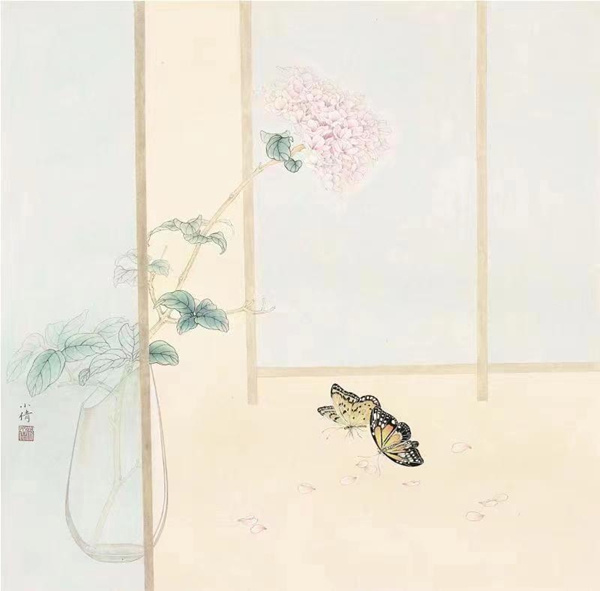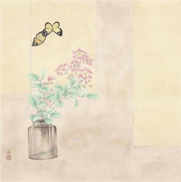 2019年 花间系列 68×68cm 纸本设色