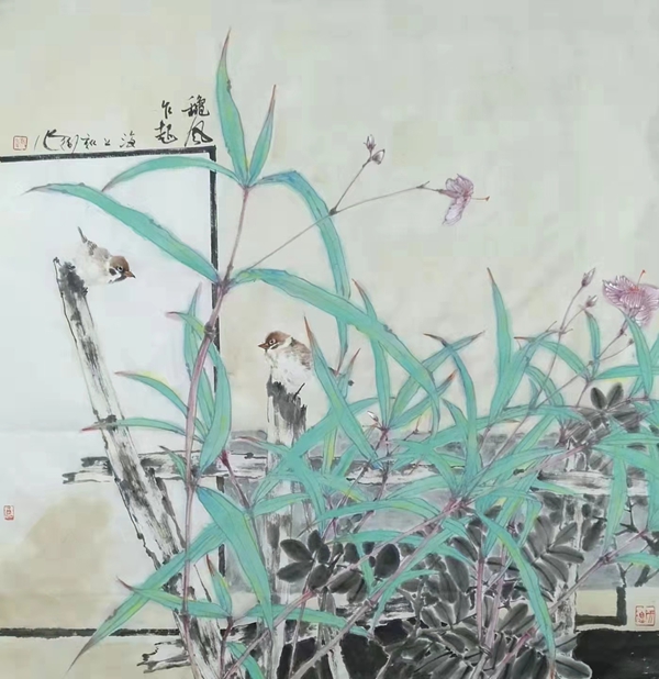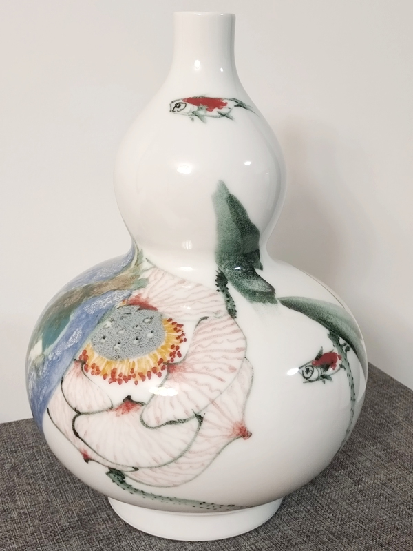 李新卫在古老的中国瓷器上展现了一个属于21世纪上海的姹紫嫣红充满生机的瓷上艺术世界。在这个世界我们可以听到鸟儿在枝头歌唱,看到鲜花在大地开放,大自然一片生机盎然。
