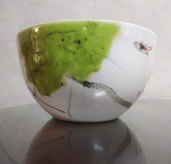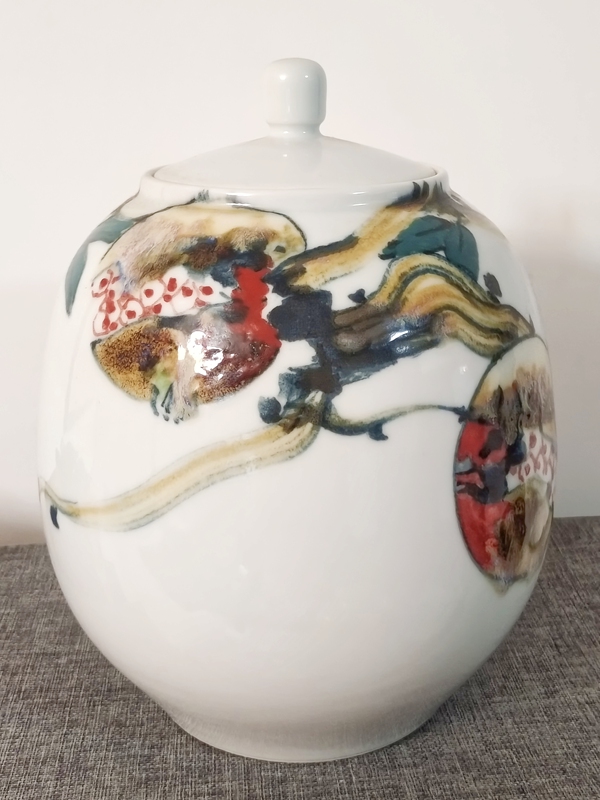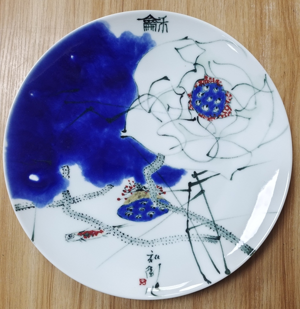 海派画家历来有着非同寻常的广泛兴趣和开阔视野,他们不仅在宣纸和画布上尽情宣泄着自己的艺术才华,也不时会在瓷器上挥毫作画。大体海派画瓷可以分两个阶段。首先是上世纪六十年代,老一辈画家林风眠、朱屺瞻、唐云、谢稚柳、程十发、刘旦宅,都曾一次次去瓷都景德镇画瓷,那完全是一个非功利时代,老画家们乘兴而去,尽兴而归,为我们留下了许多神采飞扬的瓷盘和瓷瓶。我曾无数次在展览会和朋友家中目睹他们的艺术在瓷器上的精彩重现,但我们也应该明白,这些艺术大家画瓷,说到底还是余兴所致,对于艺术与瓷器如何在“艺”与“技”的结合上,还没有时间和精力去深入研究。这个遗憾,直到近二十多年才得到了有力的弥补。上海画家有了就在家门口的自己的窑口,申窑、泠窑、秦古窑……。而且认识到,画瓷其实并不是把自己的“画”直接照搬到瓷坯上。
