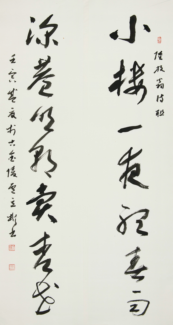 陆游诗联 小楼一夜听春雨,深巷明朝卖杏花。 138×73.5cm