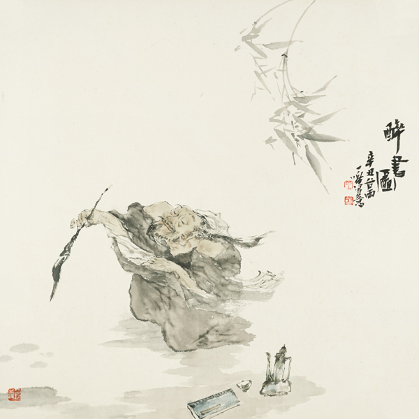 明 .沈周 《秋林策杖》诗意 49.5×49.5cm