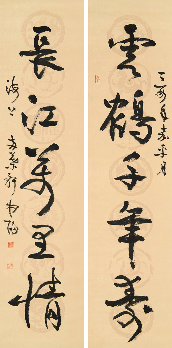 云鶴 长江 联 135.5×41cm