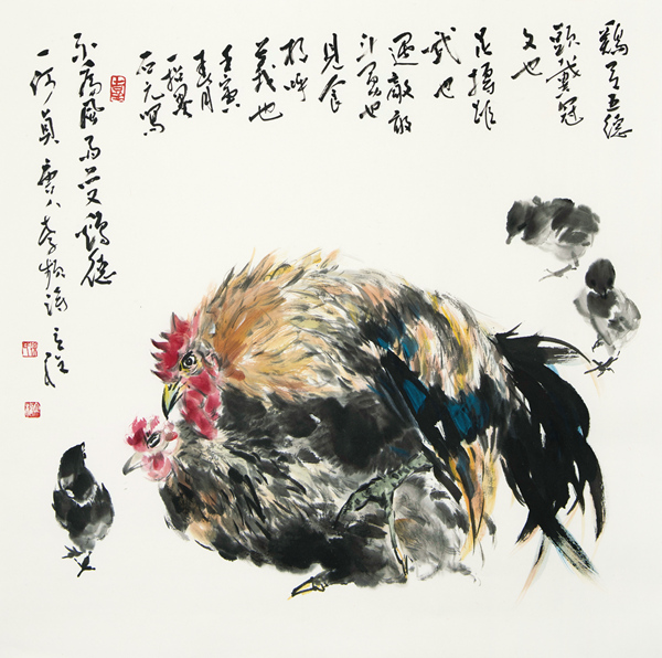 《鸡有五德》 69×69.5cm