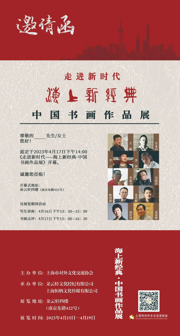 为学习贯彻党的二十大精神,更好地展示海派文化的艺术传承,4月15日至4月19日,由上海市对外文化交流协会主办的“走进新时代——海上新经典·中国书画作品展”(巡展)在朵云轩(南京东路422号)举办。