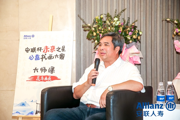 7月29日下午,夏建峰老师应邀来到位于徐家汇的朵云轩艺术中心三楼,安联杯未来之星全国书画大赛的系列活动,正在这里举行。上午是油画创作活动,辅导老师的著名油画家隋军老师,他也是油画评委,下午的小朋友国画创作活动就有夏建峰老师担任。