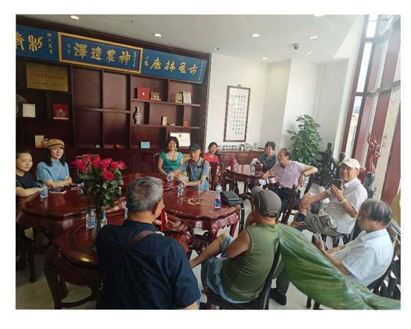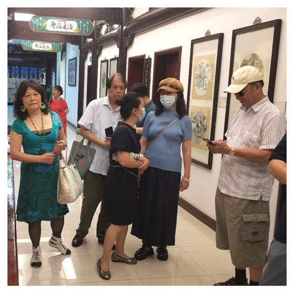 8月10日下午,画友荟一行十余位画家冒着酷暑,前往华山路2号雷允上药城3楼雷允上-棠柏印社文化创作基地画廊,参观”史新民写生作品展”並座谈交流。史新民老师数十年来坚持中国画山水写生和创作,他作为画友荟资深画家,尽管年逾八旬但仍日日笔耕不辍,每天将自已作品发佈在画友荟群,和大家交流。这次展出的近三十幅作品,从新疆到云南,从太行到桂林…从一幅幅风格各异的写生作品中,让我们看到画家求变的探索轨迹!