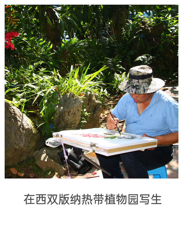 这次夏建峰新年个展,是从近几年众多画作中遴选出的百幅代表作,反映了他的艺术个性,也可以从中看见他的艺术创作路径,即坚持走出画室,走向大自然,向大自然讨情趣、寻灵感。许多作品就是现场写生的结果,或是回家以后再稍事“收拾”的结果,所以他的作品中自然物象的痕迹很深,大自然的绚丽俊俏入得画中,让人产生美感和遐思。近几年来,他或与师长好友组团,或独自驾车远行,先后在新疆喀什、阿勒泰,内蒙古呼伦贝尔大草原,东北三省的黑龙江,吉林、辽宁,以及山东的泰山、博山,青岛黄岛区海滩,河南太行山脉,浙江丽水、浦江,安徽大别山,江西井冈山,贵州大方县,云南红河元阳、普洱市那柯里、景迈山、西双版纳等地跋山涉水,风餐露宿,奋力笔耕,把所见山川湖海、花鸟鱼虫尽入丹青。同时他的画作,也不仅仅止于师法自然,而是有自己的理解和体悟,有自己的艺术表述语言,这正是实践了“外师造化,内师心源”的艺术创作思想。