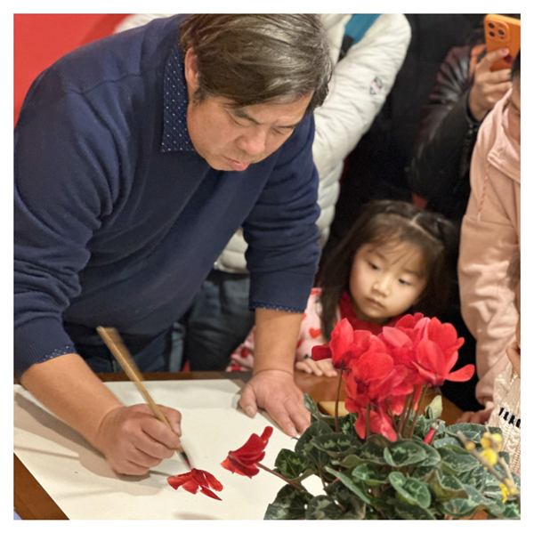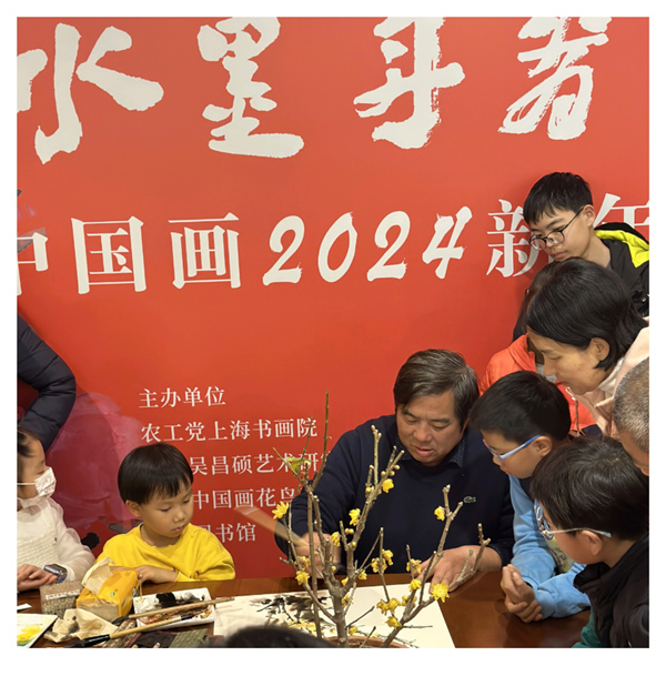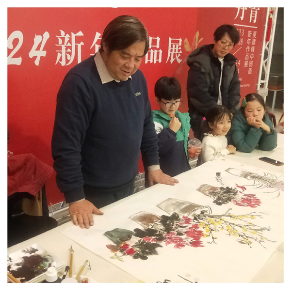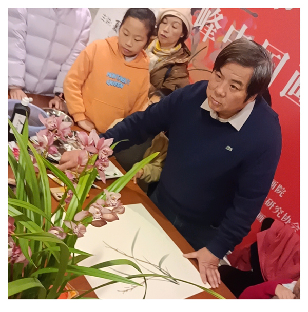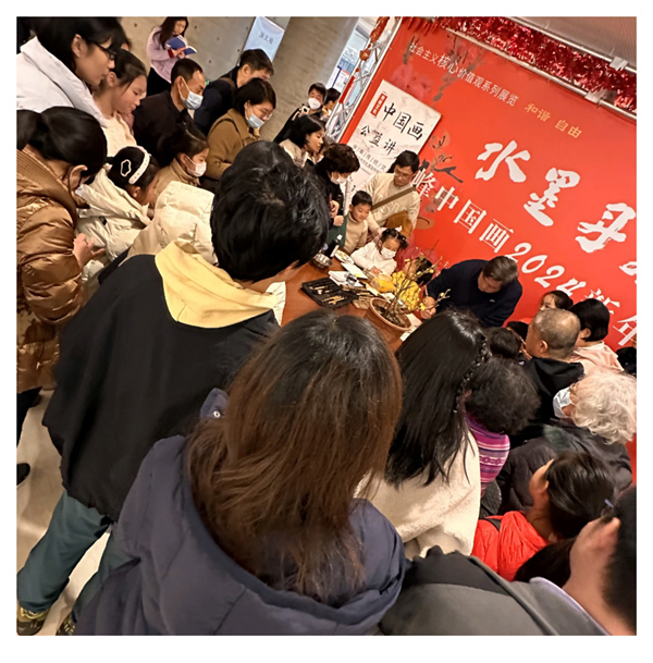 在浦东图书馆“水墨丹青”夏建峰中国画2024新年作品展上,夏建峰老师多次举办“中国画写生与创作”公益讲座