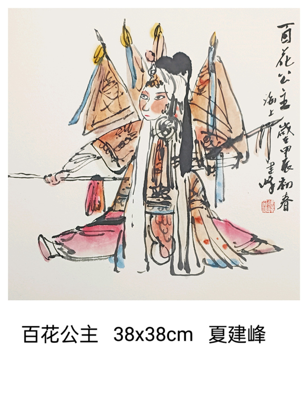 活动结束前,正在浦图举办“繁花齐春”艺术展的策划人、京剧爱好者、上海著名画家、上海花鸟画艺术沙龙秘书长夏建峰向尚长荣、滕俊杰等赠送了精心创作的京剧画作《霸王别姬》《野猪林》《百花公主》。