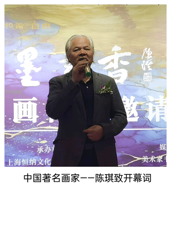 中国画作为一种源于中国传统文化的艺术形式,历经岁月长河、积淀深厚内涵,是中华民族之文化瑰宝,以其独特的笔墨技法赋予了作品别样的韵味和表现力。在开幕式上,中国著名画家、上海美协顾问陈琪先生说:这次画展,应该看到,上海的许多画家,在继承传统艺术的精髓,这些作品沉静典雅,清朗俊秀,每个人的作品各有风貌、各具千秋,许多画家不仅展现出对中国绘画艺术的深刻理解和独到见解,也表达了对祖国山河的热爱和对美好生活的向往,同时也对这次参加展览的画家,提出了更高的要求。