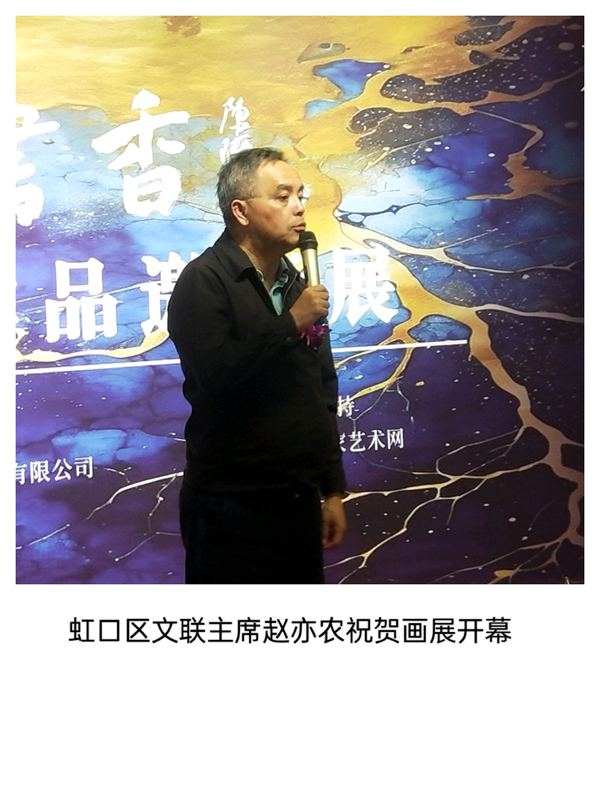 虹口区文联主席赵亦农先生说:我是来学习的,我在文联的工作,就是为各位艺术家服务的,祝贺本次画展开幕!也祝各位艺术家身体健康,创作丰收!