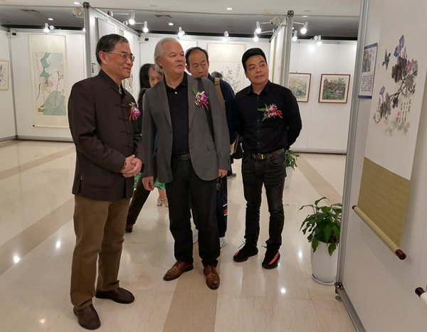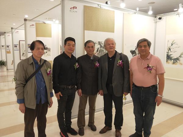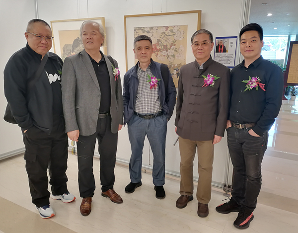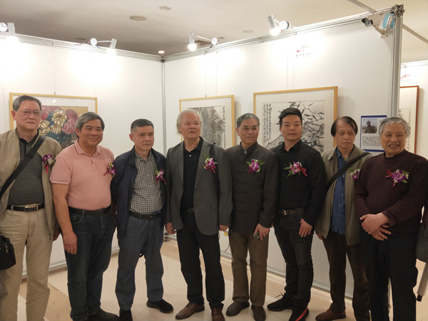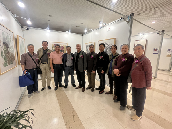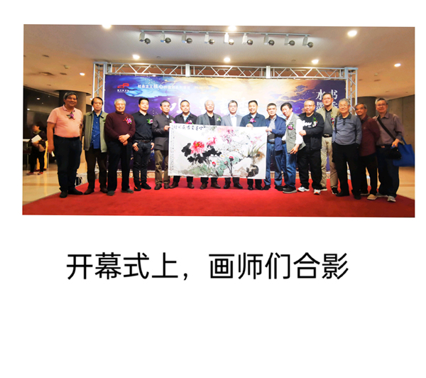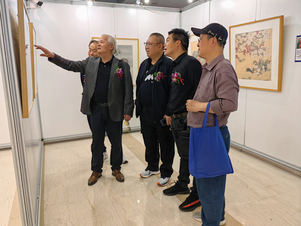 画师们在展厅交流合影