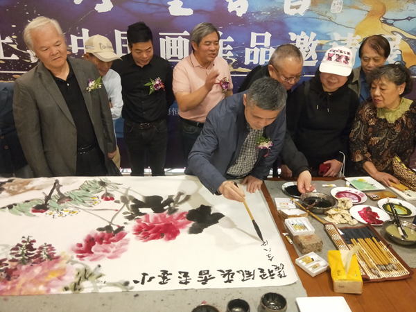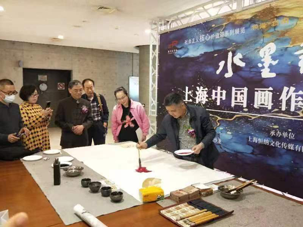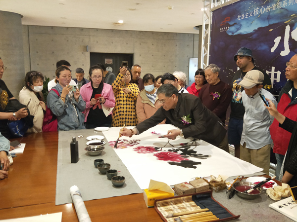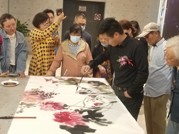 在开幕式前,已经来了许多绘画爱好者,画师们现场挥毫泼墨,把活动推向高潮。