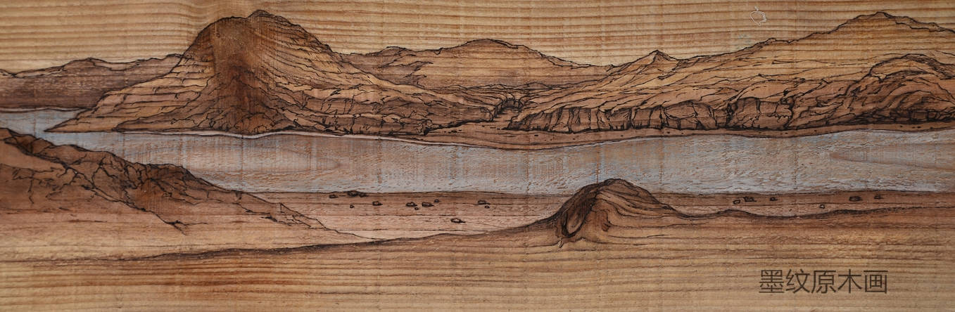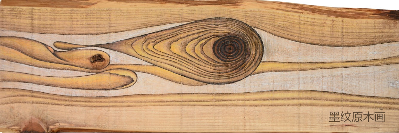 陆诚刚原创的墨纹原木画介绍: 1、以传统和现代相结合的一种绘画理念和表现方式。 2、以画板自然本生形成的木纹和结点为依托进行再创造。