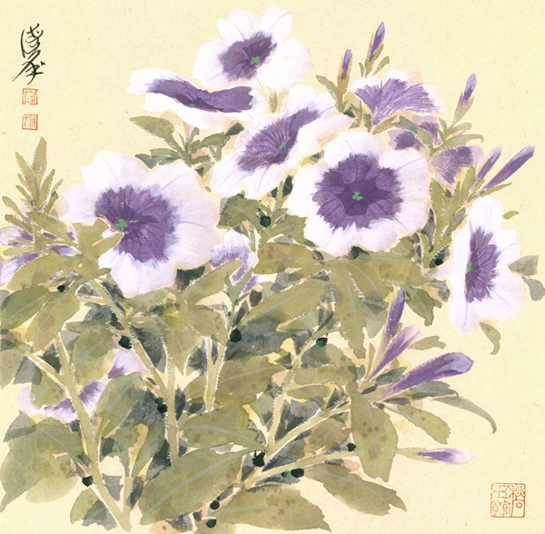 前辈艺术大师陈佩秋先生教导我:判断艺术作品优劣之标准,一为美,二为难。又说:艺术贵在创新。我以为,马海峰都做到了。他兼具小写意和没骨画法相结合的笔墨趣味,使画面色彩缤纷,却又清新脱俗,奔放而静谧,精细而率性,严守法度又妙趣横生。他说笔墨当随时代,技巧需要借鉴传统,但决不拘泥于一技一法,要契合当代人的审美意识。一花一世界,一花一故事。生活是艺术灵感的源泉,艺术是对生活的精心雕琢,激荡的是心灵美好。