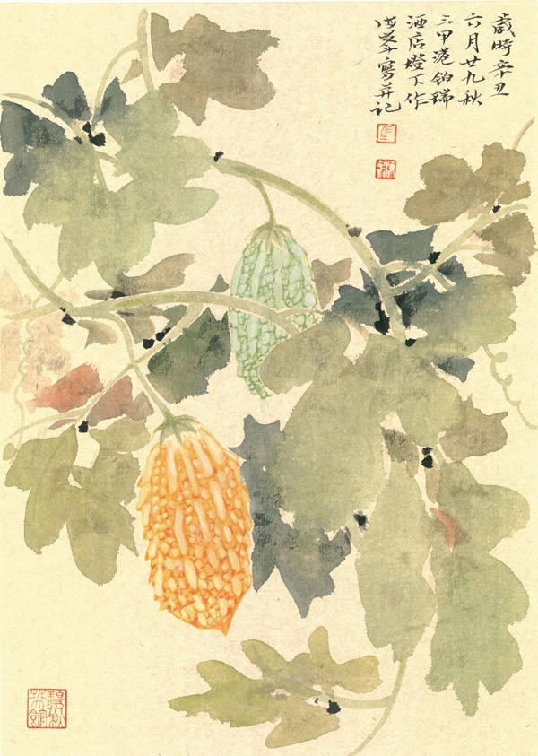 我国传统的花鸟画,到了宋代便达到了前所未有的高峰。马海峰深知,要展现当代花鸟画的语境,必须以传统为本,造化为师。他的创作灵感发端于宋元写实传统,激情来源于大自然的神奇造化。这次展出的百幅花卉作品,不少是野外写生回来创作的,也有相当一部分是现场写生得来的。迁想妙得,鲜活灵动,往往不可复制。其实,不经一番寒彻骨,怎得梅花扑鼻香?马海峰勤奋地追随花仙子的脚步,采风的足迹远及欧美和东南亚,还有我国云、贵、川、鲁、豫及苏、浙、沪等地。笔者有幸与马海峰一起采风,见证他云南之旅13天里画了43幅精彩的写生作品,西双版纳热带植物园、普洱茶场、曼听白塔公园、孟连旧新寨和那柯里古镇等,所见花果一一入画,这让我们惊叹不已。他为画画而生,一天工作12小时以上是常态,是圈内有名的“拼命三郎”。