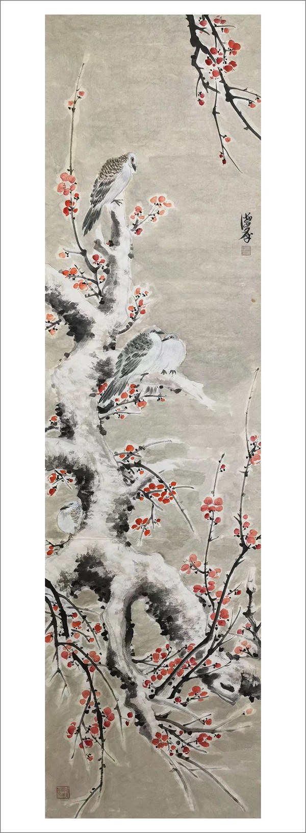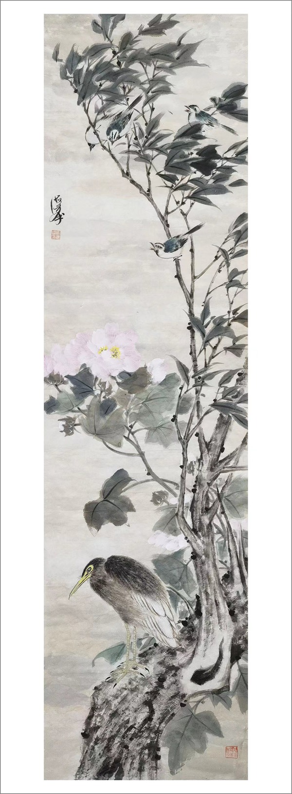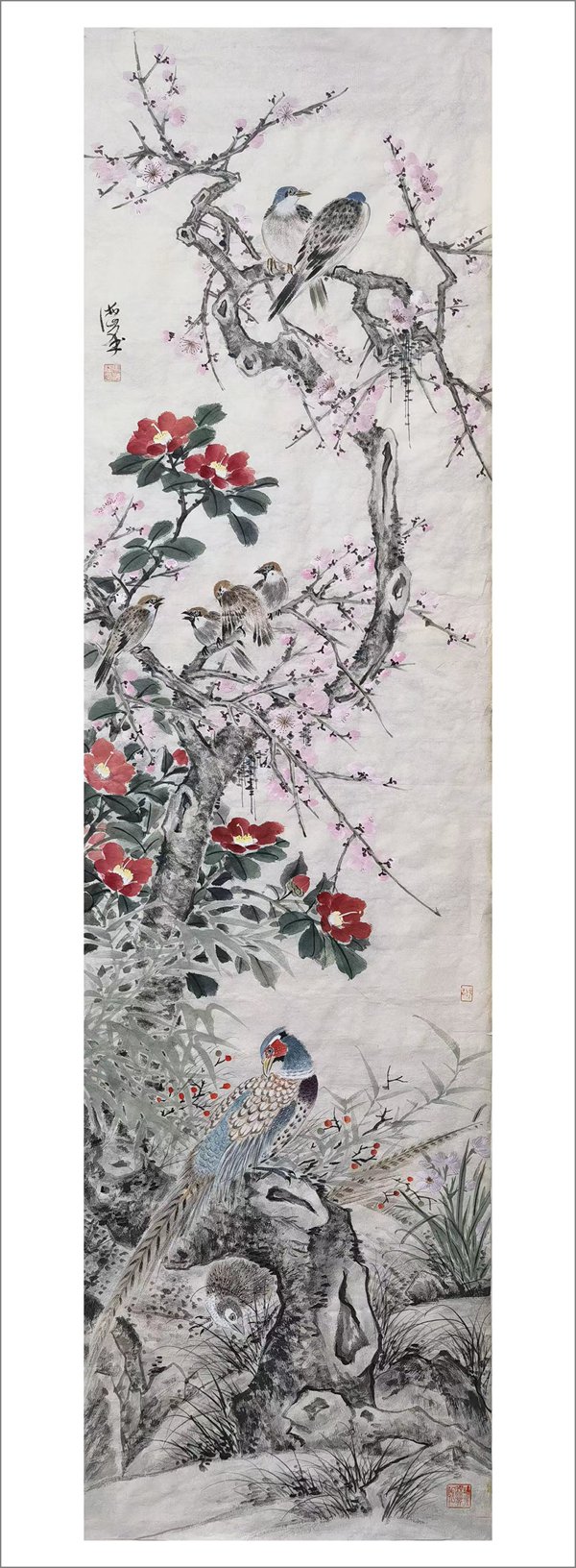 马海峰以擅画花鸟著称。20年前,马海峰参加上海和杭州国际艺术博览会,创造了作品当天售罄的业绩,但他立志成为有创新精神的艺术家。他把“老百姓喜欢、专家点头、藏家欢迎”作为自己毕生的追求。这些年来,他将心中大美寄情于笔端,探索花鸟画化古开今、高昂与柔情相结合的道路,攀登他向往的艺术高峰——旭日推窗,眼前是百花齐放灿烂无比的诗意世界。马海峰做到了,别具一格的花鸟画为世人瞩目,作品多次入选全国美术大展并获奖,为省级美术馆和中国革命军事博物馆收藏。