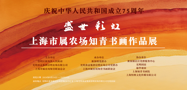 在庆祝中华人民共和国成立75周年之际,由崇明区新海镇人民政府、光明食品集团崇明农场有限公司、上海市属农场知青联谊总会联合主办的“盛世彩虹”--农场知青书画作品展”在新海镇党群服务中心和光明田园同时开幕。