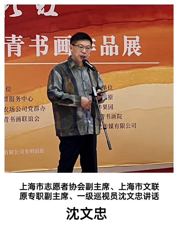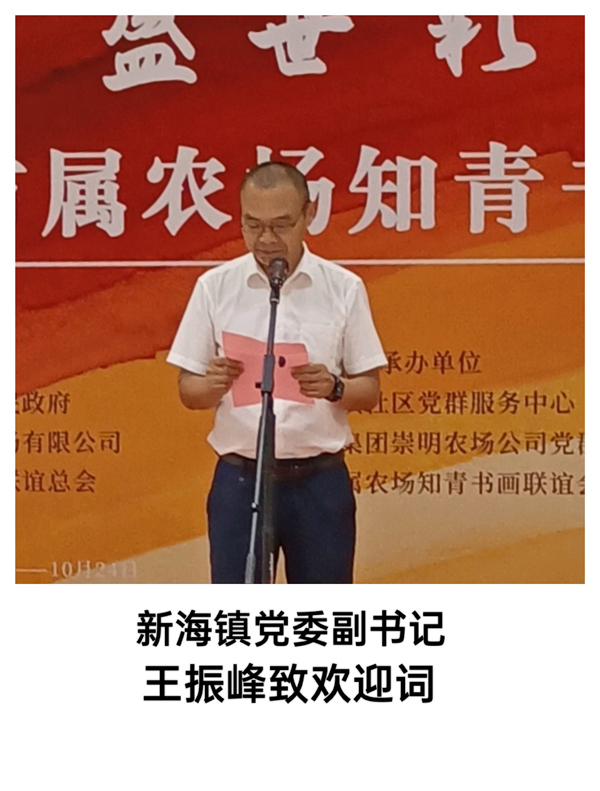 首先由上海市属农场知青书画联谊会会长、上海知青书画院院长夏建峰致欢迎词!光明集团崇明公司党委副书记陆赛红、崇明区新海镇党委副书记王振峰分别代表主办方讲话并欢迎大家的到来。上海市志愿者协会副主席、原上海市文联专职副主席、一级巡视员沈文忠发表了热情洋溢的讲话,并表示祝贺!