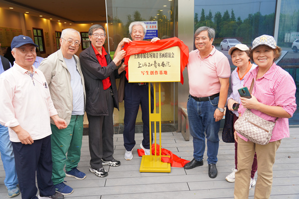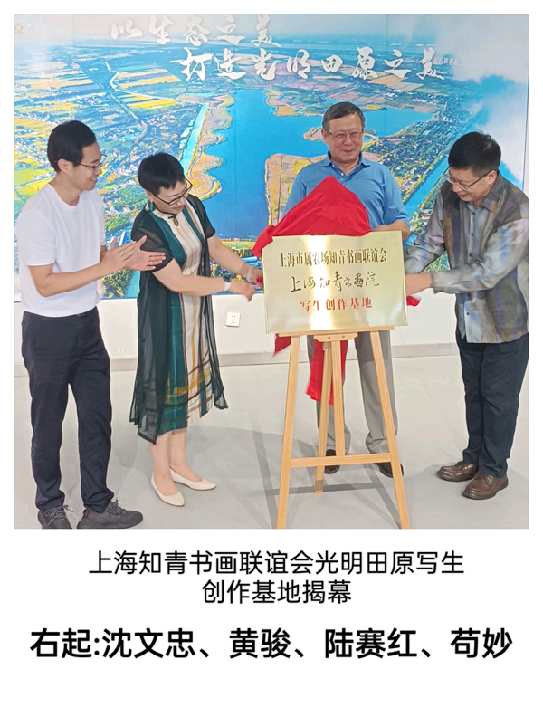 光明集团崇明公司党委副书记陆赛红、上海市志愿者协会副主席、原上海市文联专职副主席、一级巡视员沈文忠、光明集团崇明公司党办主任苟妙、绿地集团原副总裁、上海知青书画院顾问黄骏,一起为上海市属农场知青书画联谊会、上海知青书画院在光明田源的创作写生基地揭牌。