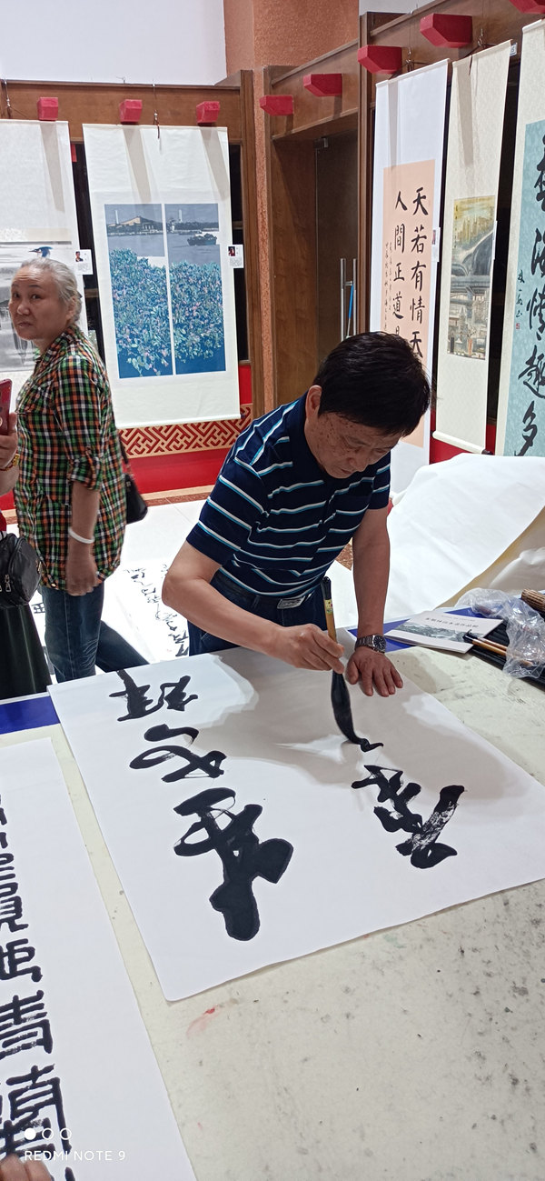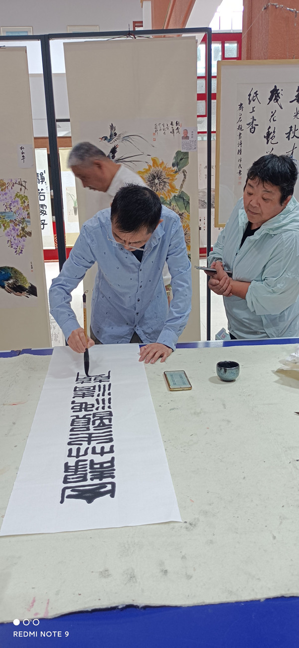 我们在新海镇书画展开幕式,很快于下午三点钟结束。