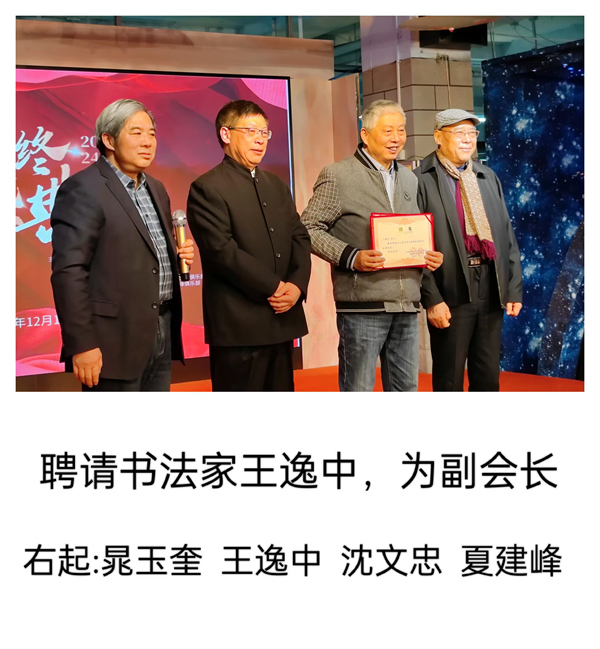 在聘书颁发证书的仪式上,夏建峰会长,邀请了晁玉奎、沈文忠、李凤吾,一起上台颁发证书。