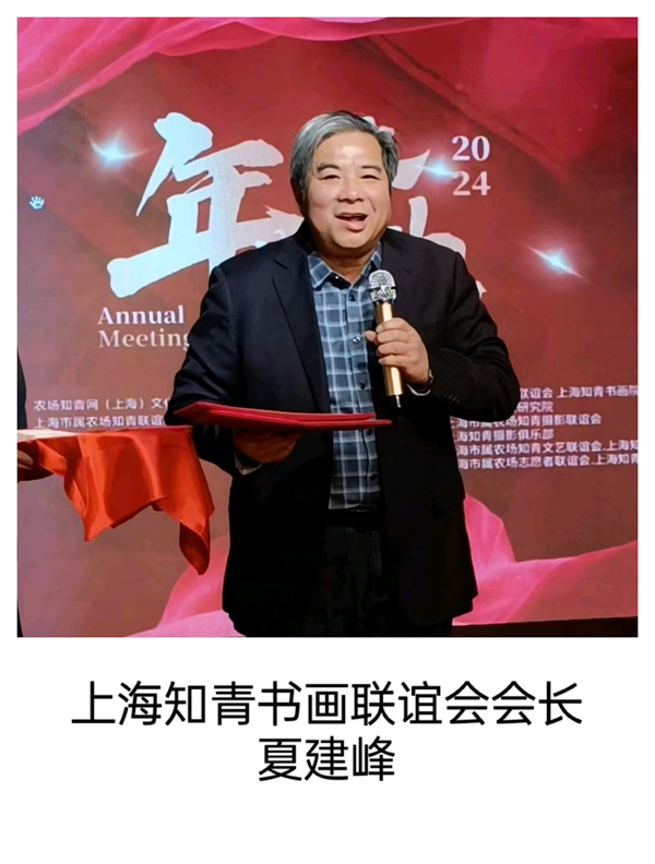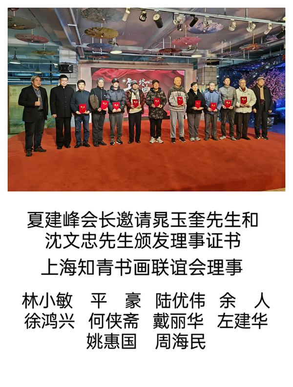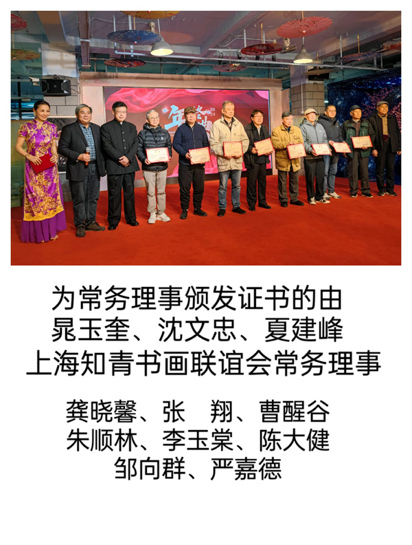 上海知青书画联谊会夏建峰会长,宣读“上海知青书画联谊会第一届理事会”成立,聘请光明食品集团原总裁曹树民、中国国际进口博览会艺委会主任陈琪,为名誉会长。