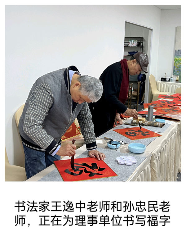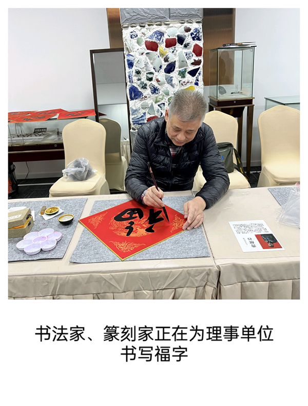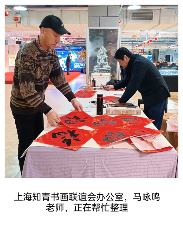 四、严嘉德,宋长忠,濮存慧,以及书画家,在大厅写春联和福字。