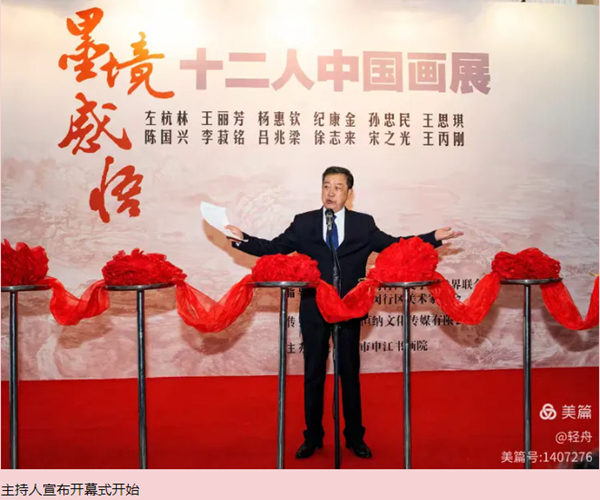 开幕式现场在影视演员张家俊的主持下, 由众多的画家与艺术爱好人员齐聚一堂,共同见证了这场盛大的十二人中国画展精彩示展。