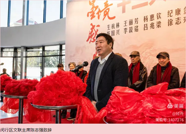 闵行区文联主席陈志强在致辞中赞扬《墨境感悟•十二人中国画展》是2025年新始的一天以艺术领军的象征率先进入了艺术盛年的行列,同时洋溢地祝愿闵行区的艺术之花将在新的一年中绽放光彩!