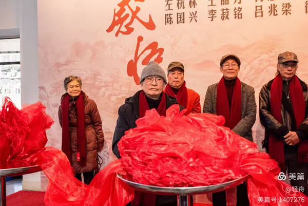 开幕式现场由闵行文联主席陈志强,闵行美协主席黄世坚,闵行美协顾问冯念康,闵行美协副主席、秘书长陈晓云,闵行区美协副主席李元勋,上海作家协会耿忠平,上海知青联谊会会长、知青书画院院长夏建峰,上海申江书画院院长左杭林,上海申江书画院书记许瑞芬等手持金剪在主持人倒计数的最后一刻落剪为画展剪出了隆重的开幕仪式,观展嘉宾有序步入展厅充满墨香的艺术气息扑面而来。