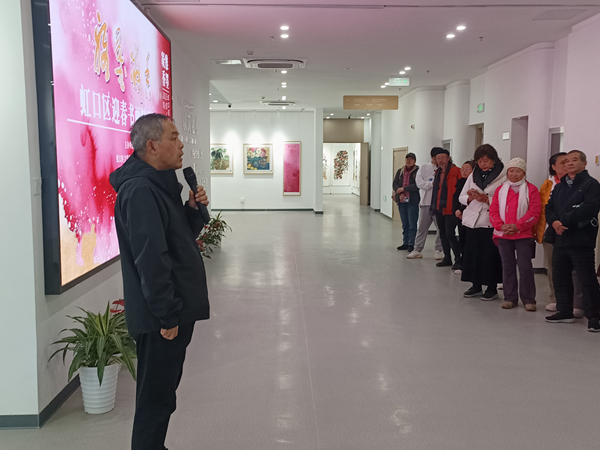 接下来请这次虹口区迎春书画精品展策展人、上海中国画花鸟画艺术沙龙召集人夏建峰发言,夏老师首先感谢各位参展艺术家,在短时间内,拿出精品力作对本次展览的支持!