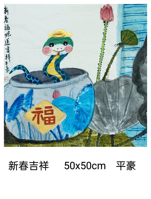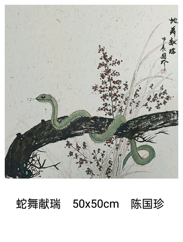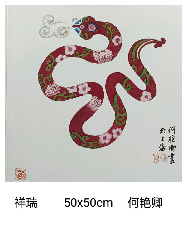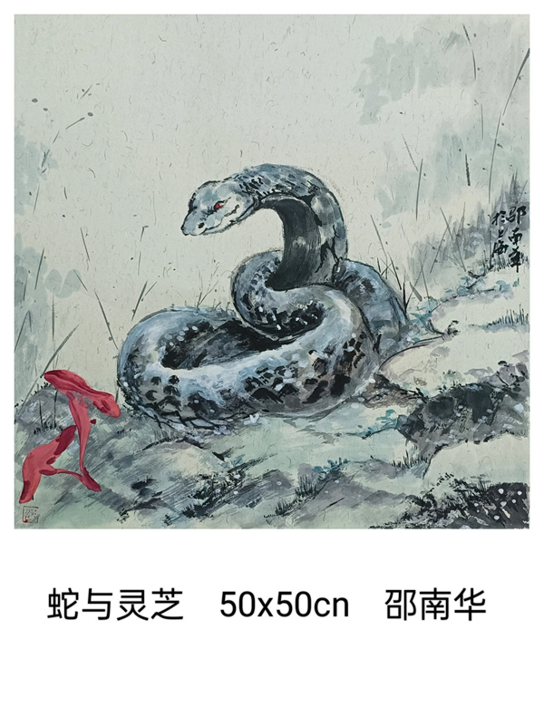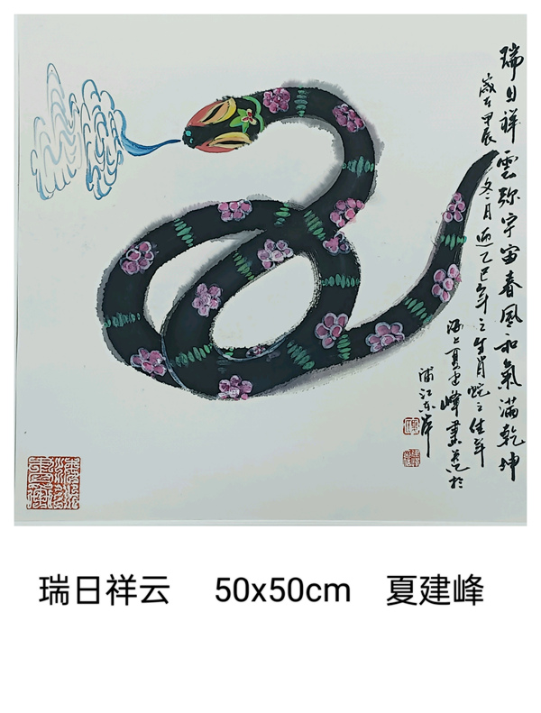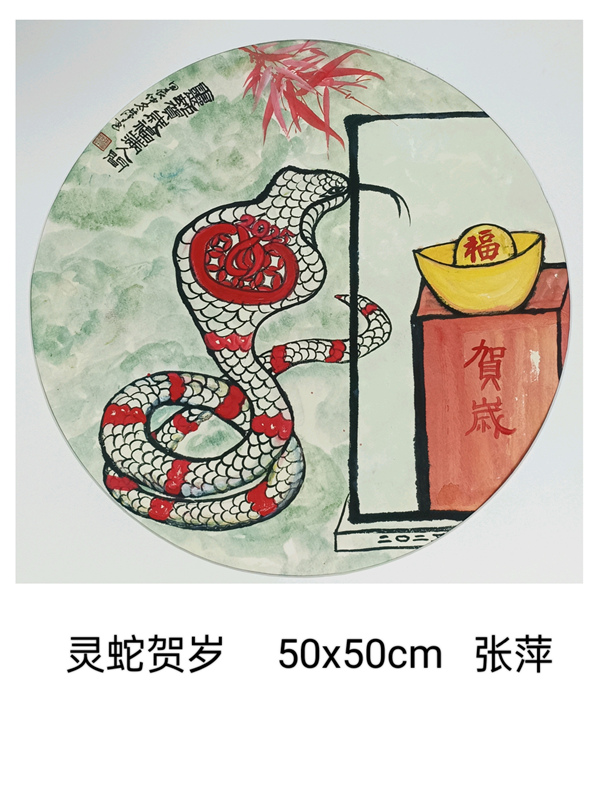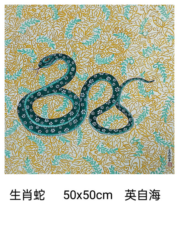 我们上海这片文化厚土,有着浓郁的艺术气息。我们书画联谊会的艺术家秉持着对艺术的赤诚初心,展览了一批以生肖蛇为题材的书画小品,尽管尺幅有限,却容纳着书画家们对艺术的想象与洞察。这些作品题材丰富多样,围绕生肖蛇题材,结合山水、花鸟、人物已经装饰画,这些作品则表现了自然灵动与神韵。书画家们以精妙的笔墨、和谐的色彩,勾勒出内心深处的美好和对艺术的不懈探索。