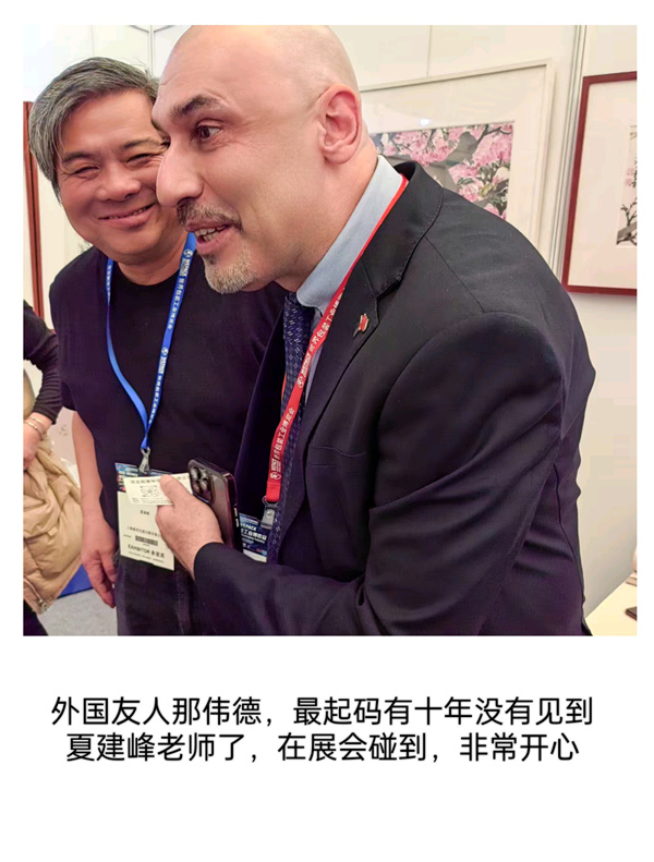 (注:诗中融入夏建峰的花鸟画专长与包装展会的创新主题,以“彩盒”“包装世界”呼应展会场景,用“丹青”“古意”体现传统书画的隽永。)