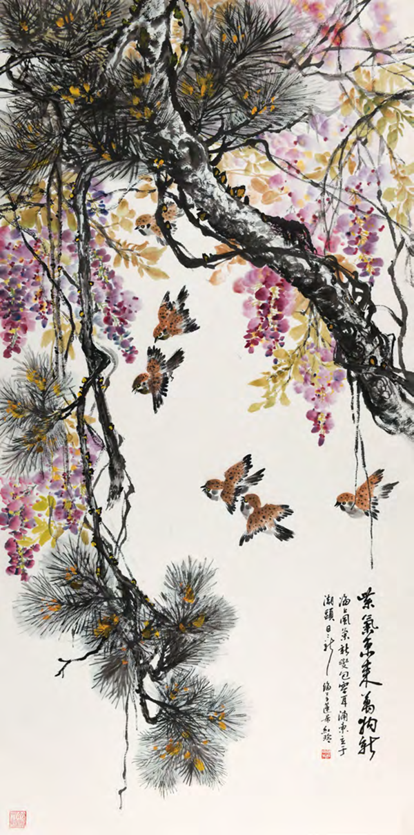 《紫气东来万物新》 137cm×68cm